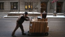 In this Dec. 26, 2013, file photo, a UPS worker delivers packages in Chicago, Illinois.
