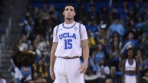 UCLA guard LiAngelo Ball (15) looks on during an college exhibition basketball game between the Cal State Los Angeles and the UCLA Bruins on Nov. 1, 2017, at Pauley Pavilion in Los Angeles, CA.