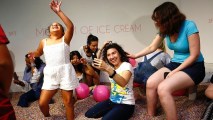 Visitors play into a large pool filled with faux confetti-colored sprinkles at the Museum of Ice Cream in New York City. The temporary museum will find a home in LA's Arts District for five weeks, beginning on April 22, 2017. (Photo by Kena Betancur/Getty Images)