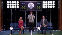 Reese Witherspoon and Jimmy Fallon compete in a football trivia game, with each wrong answer resulting in coolers full of mystery substances being dumped on their heads.